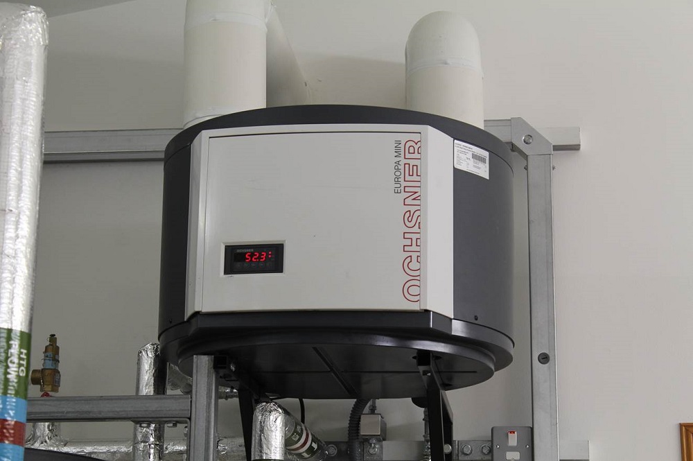 The house is heated by conventional oil boiler with a wood burning stove in the lounge. To maximise the use of the solar PV system we fitted an Ochsner Europa Mini IWP domestic hot water heat pump. This extracts energy from the lounge which allows the heat pump to operate at a high efficiency while still producing 60°C water. The unit has an output rating of 2.2kW but only uses 600W of power to run. The PV system can produce 600W of power for much of the year which means as long as there is not a high demand for energy, the domestic water is heated for free. |